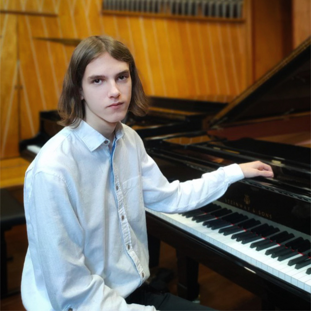 Yurii Nechypor ist ein junger ukrainischer Pianist, der 2006 geboren wurde. Er ist Gewinner von nationalen und internationalen Wettbewerben wie „Podilskyi Vodohrai“ (2018), „Classical Meridian"(2019)“, dem „Nationalen Wettbewerb für Pianisten“ (2020), und dem „Franz-Liszt-Center Klavierwettbewerb“ (2023). Mit der Unterstützung der Stadt Khmelnytskyi hat er als begabtes Kind der Ukraine ein Stipendium bekommen und nahm aktiv an der Konzerttätigkeit der Khmelnytskyi Philharmonie teil. Im Jahr 2022 wurde er für das MORE-Programm an der MDW VIENNA in der Klasse von Lilia Silberstein ausgewählt. Yurii ist derzeit Schüler am Johann-Josef-Fux-Konservatorium in der Klasse von Anfisa Bobylova.